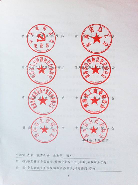 由省委統(tǒng)戰(zhàn)部、省總工會(huì)等8家單位聯(lián)合組織開展的"青海省優(yōu)秀企業(yè)、企業(yè)家"評(píng)選表彰活動(dòng),經(jīng)過多重、嚴(yán)格評(píng)審,青海省物產(chǎn)集團(tuán)總公司榮獲"青海省第七屆優(yōu)秀企業(yè)"稱號(hào)。集團(tuán)及所屬各公司將繼續(xù)發(fā)揚(yáng)成績、再接再厲,進(jìn)一步發(fā)揚(yáng)改革創(chuàng)新精神,不斷開拓市場(chǎng),攻堅(jiān)克難、腳踏實(shí)地、真抓實(shí)干,為實(shí)現(xiàn)物產(chǎn)集團(tuán)科學(xué)穩(wěn)健發(fā)展做出新貢獻(xiàn)。
