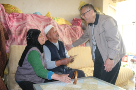王玉輝書記一行在大通縣石山鄉(xiāng)黨委副書記胡懷強(qiáng)、集團(tuán)派駐第一書記張秉瑜的陪同下,首先來到兩戶重點(diǎn)幫扶對象的家中進(jìn)行幫扶慰問。貧困戶馬得倉患慢性腎炎和高血壓,其妻馬尕奴子患多種慢性病,年老體衰,沒有勞動能力,生活十分困難。貧困戶宗統(tǒng)林患嚴(yán)重腰間盤突出疾病,兒子白血病去世,給貧困的家庭背負(fù)著20萬左右的債務(wù)。王玉輝書記對這兩戶因病致困特困戶的生活情況非常關(guān)注,詳細(xì)地詢問了他們的家庭基本情況和面臨的困難,了解了集團(tuán)駐村扶貧工作干部開展扶貧工作的情況。親切的話語貼近了與貧困群眾的心,貧困戶們握著他的手嘮著家常,愉快地說起了現(xiàn)在的生產(chǎn)生活情況和對未來生產(chǎn)生活的想法憧憬,所到之處時時傳來歡聲笑語。