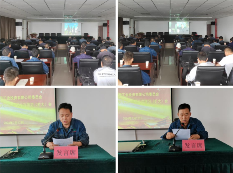 為深入貫徹落實習(xí)近平總書記在青??疾鞎r的重要講話精神,把思想、認識和行動統(tǒng)一到習(xí)近平總書記對青海工作的重要指示精神上來,7月13日上午,工投公司黨委在16樓會議室召開理論學(xué)習(xí)中心組學(xué)習(xí)2024年第八次學(xué)習(xí)(擴大)會暨開展“黨紀學(xué)習(xí)教育”活動推進會。公司黨委書記,董事長、總經(jīng)理王兆明主持會議;公司黨政班子成員、全體黨員、中心組學(xué)習(xí)秘書、預(yù)備黨員、發(fā)展對象、入黨積極分子、各支部信息聯(lián)絡(luò)員、助理以上管理人員60余人參加。