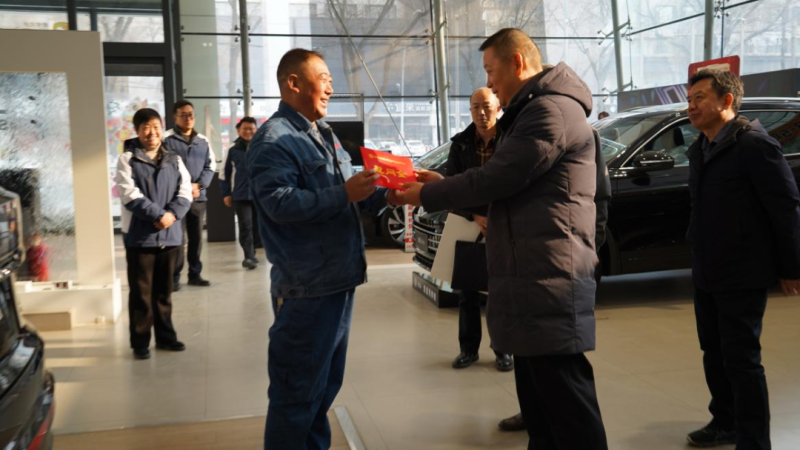 在物產(chǎn)集團(tuán)黨委副書記、總經(jīng)理張?jiān)手彝九阃?,省總領(lǐng)導(dǎo)在汽貿(mào)公司看望慰問了一線職工,并參觀了公司銷售展廳。詳細(xì)了解企業(yè)經(jīng)營情況、職工生活情況、工會(huì)工作開展情況等,并勉勵(lì)汽貿(mào)公司領(lǐng)導(dǎo)班子要積極面對(duì)、堅(jiān)定信心、攻堅(jiān)克難,增強(qiáng)戰(zhàn)勝困難的信心和決心,在新的一年里搶占市場,實(shí)現(xiàn)營收。在與一線職工劉貴生親切交流中,趙組長詳細(xì)了解其家庭情況和生活狀況,認(rèn)真聆聽了職工的訴求與心聲,并代表省總工會(huì)將慰問金送到劉貴生手中。