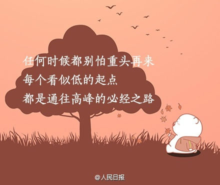 任何時(shí)候都別怕重來,每個(gè)看似低的起點(diǎn),都是通往高峰的必經(jīng)之路。你不努力,誰又能替你成長?來源:新浪微博@人民日?qǐng)?bào)
