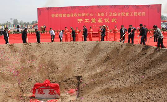 領(lǐng)導(dǎo)和嘉賓為青海曹家堡保稅物流中心(B型)及綜合配套工程項目奠基