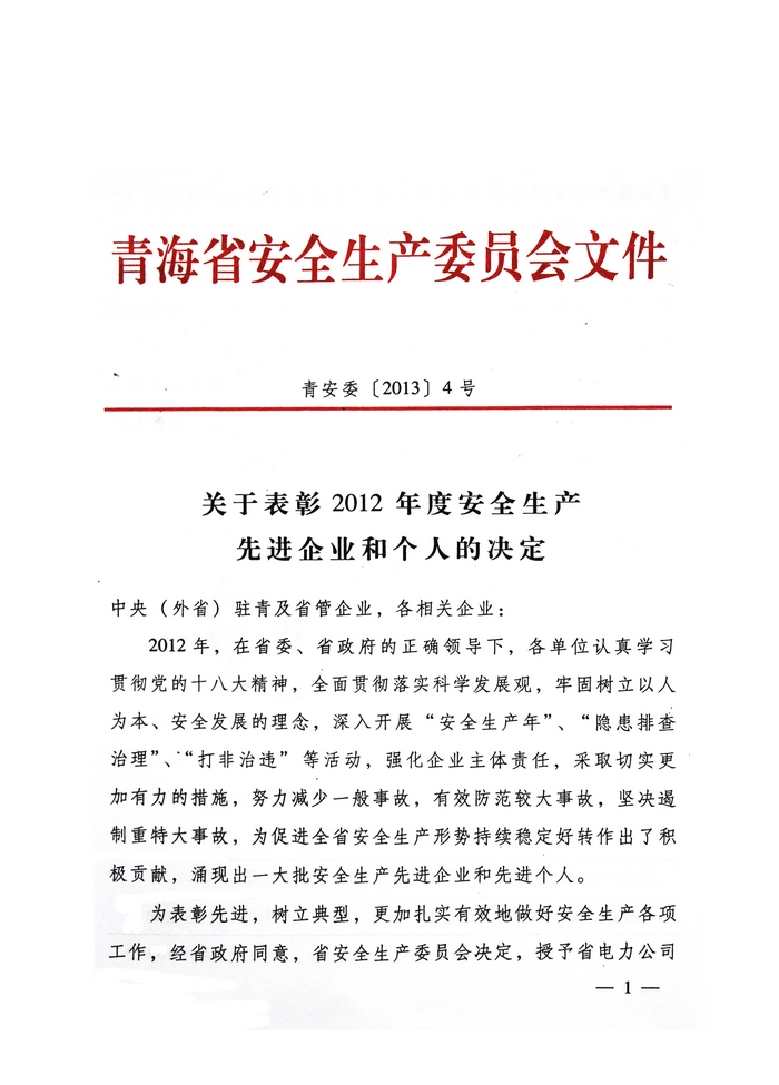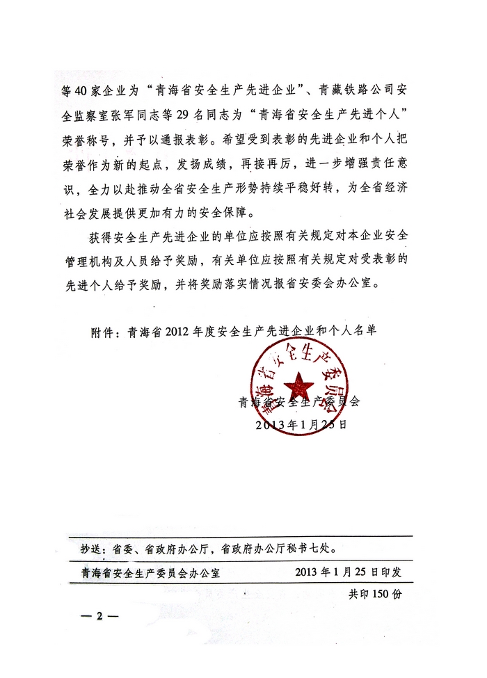 青海物產(chǎn)榮獲“2012年度安全生產(chǎn)先進(jìn)企業(yè)”榮譽(yù)稱號(hào)